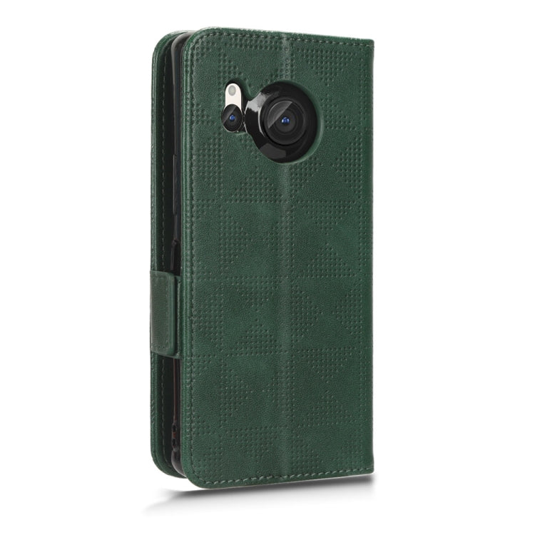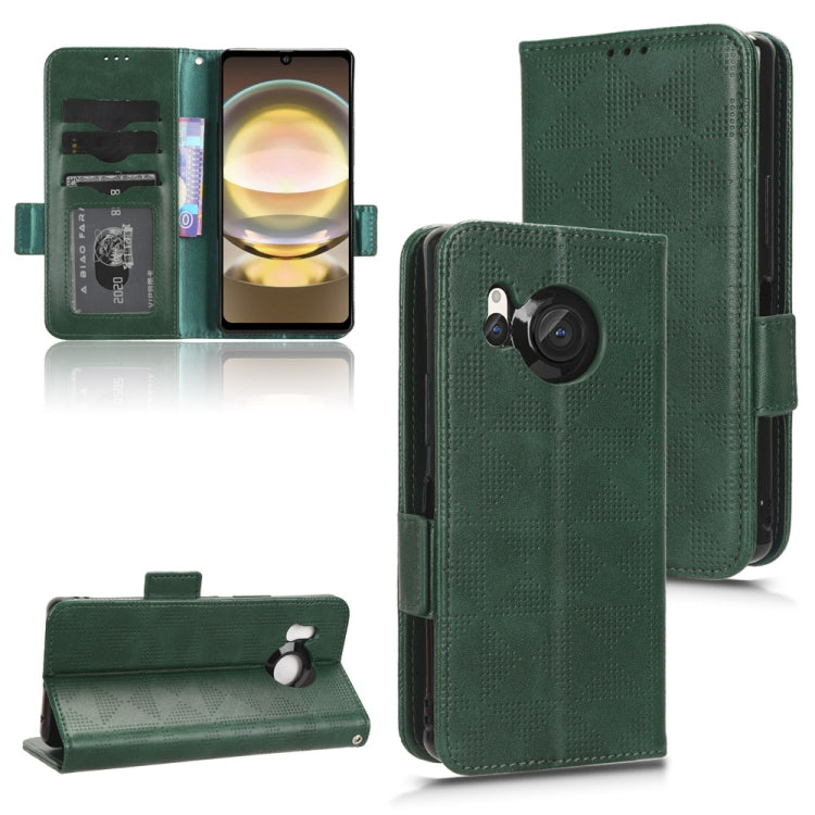 Funda de Cuero para Sharp Aquos R8 con Patrón de Triángulo Simétrico (Verde)