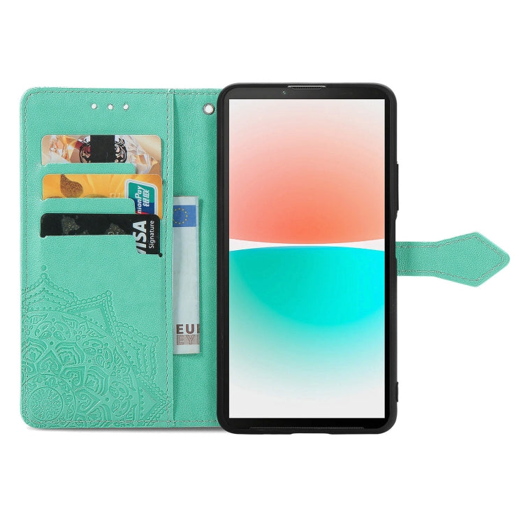 Funda de Cuero para Sharp Aquos R8 Mandala Flower en Relieve para Teléfono (Verde)