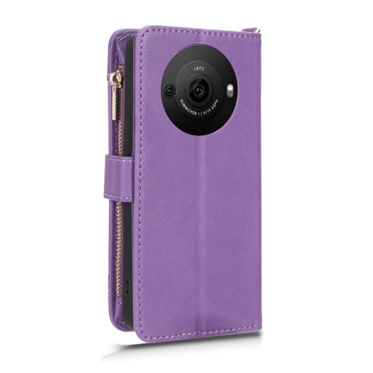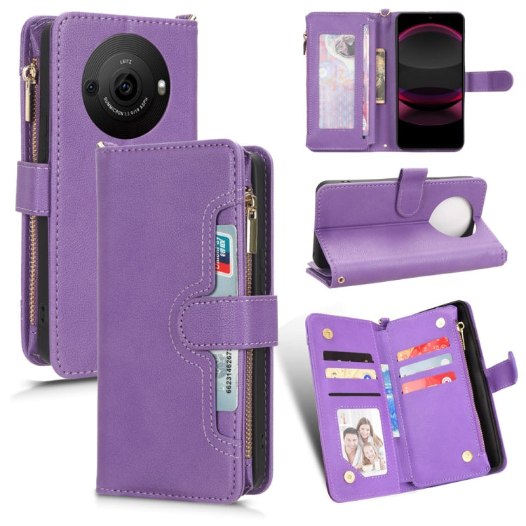 Funda de Cuero con Textura Litchi y Cremallera para Sharp Aquos R8 Pro (Púrpura)