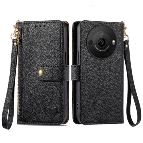 Funda de Cuero para Sharp Aquos R8 Pro Love con Lanyard y Zipper (Negro)