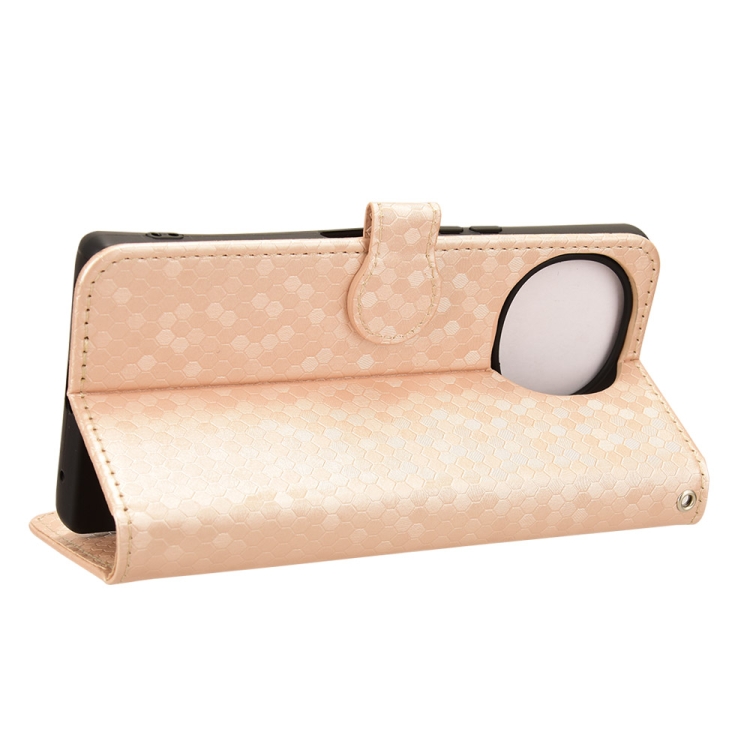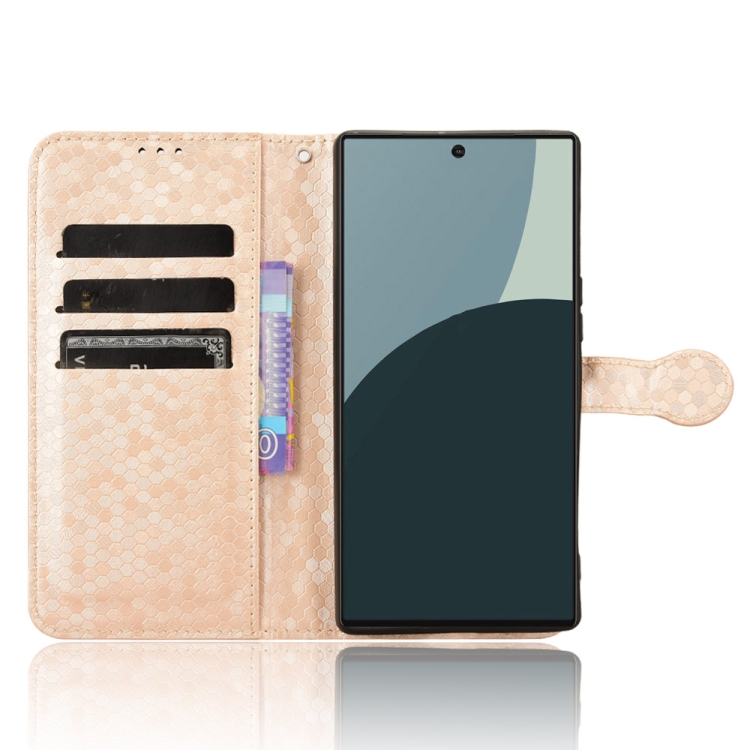 Funda de Cuero Sharp Aquos R9 Textura Punto de Panal (Dorado)