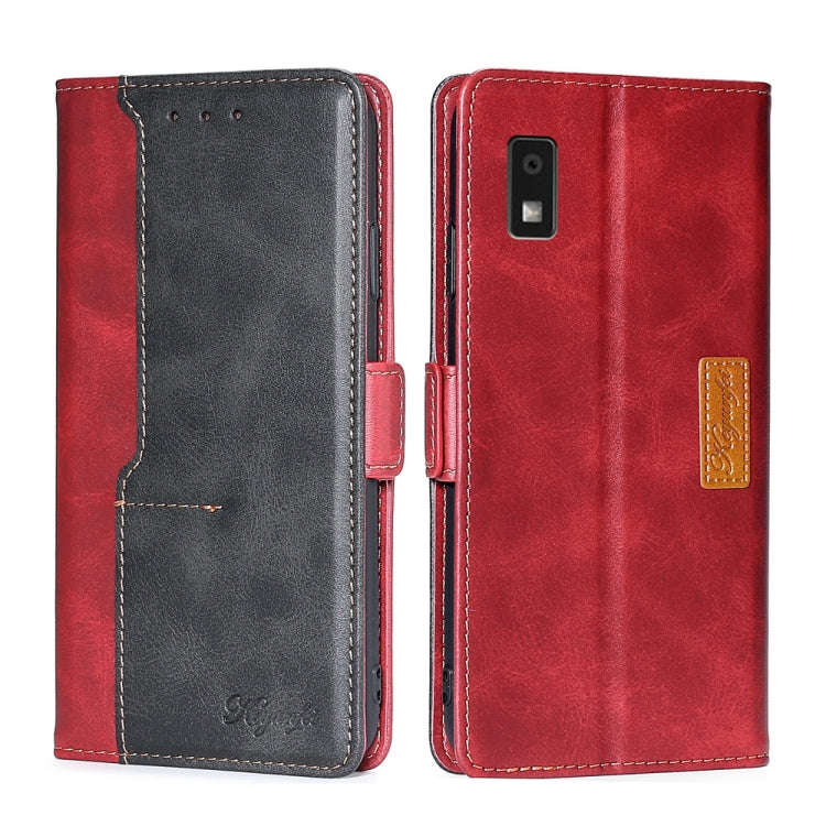 Funda de Cuero para Sharp Aquos Wish 3 con Hebilla Lateral y Contraste de Color (Rojo + Negro)