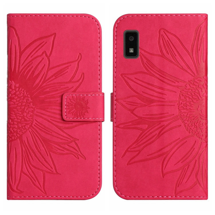Funda Flip de Cuero para Sharp Aquos Wish con Cordón y Patrón Floral Sun Flower (Rose Red)