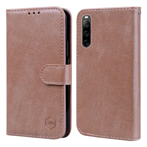 Funda para Sony Xperia 10 IV Sensación Piel Textura Cuero Aceitoso PU + TPU (Champán)