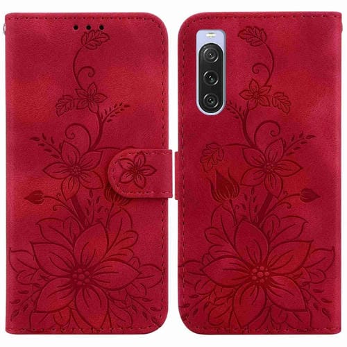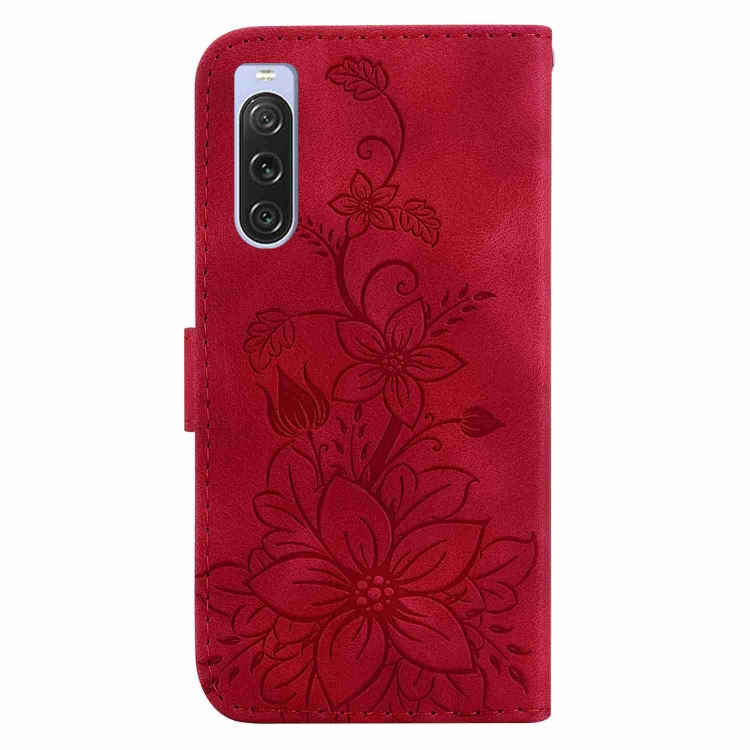 Funda de Cuero En Relieve para Sony Xperia 10 V Lily (Rojo)