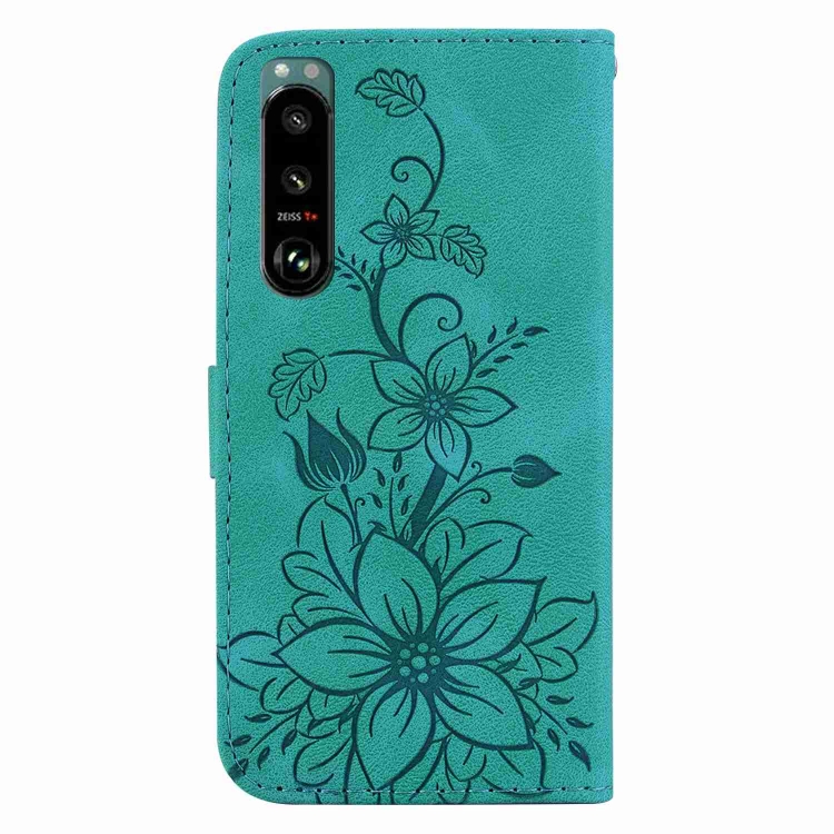 Funda de Cuero En Relieve para Sony Xperia 5 III Lily (Verde)