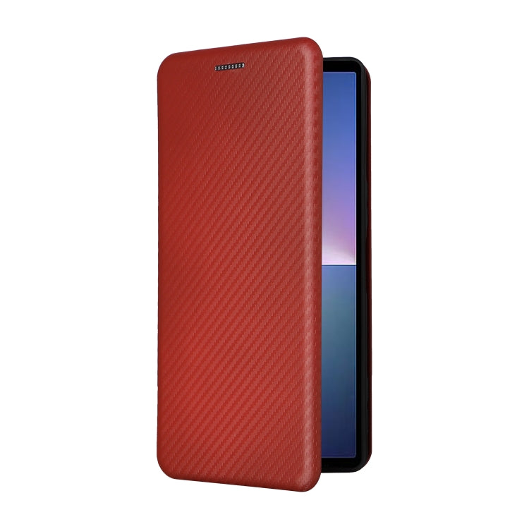 Funda de Cuero con Tapa para Sony Xperia 5 V (2023) con Textura de Fibra de Carbono (Marrón)