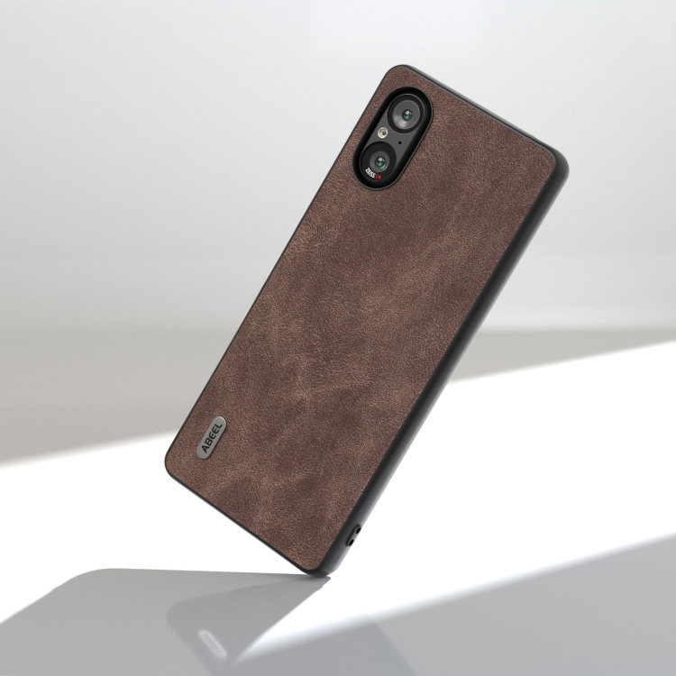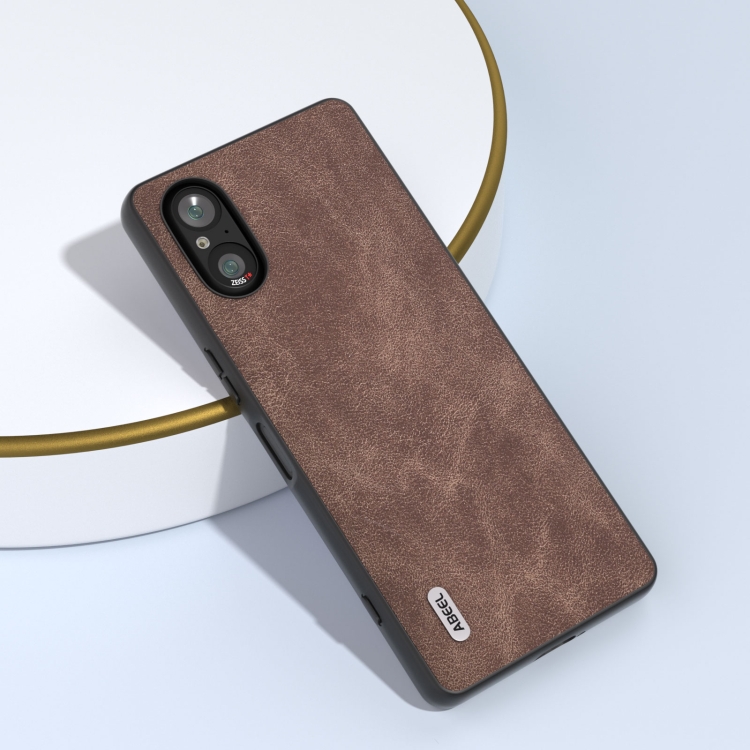 Funda para Sony Xperia 5 V Abeel con Borde Negro de Cuero PU (Café)