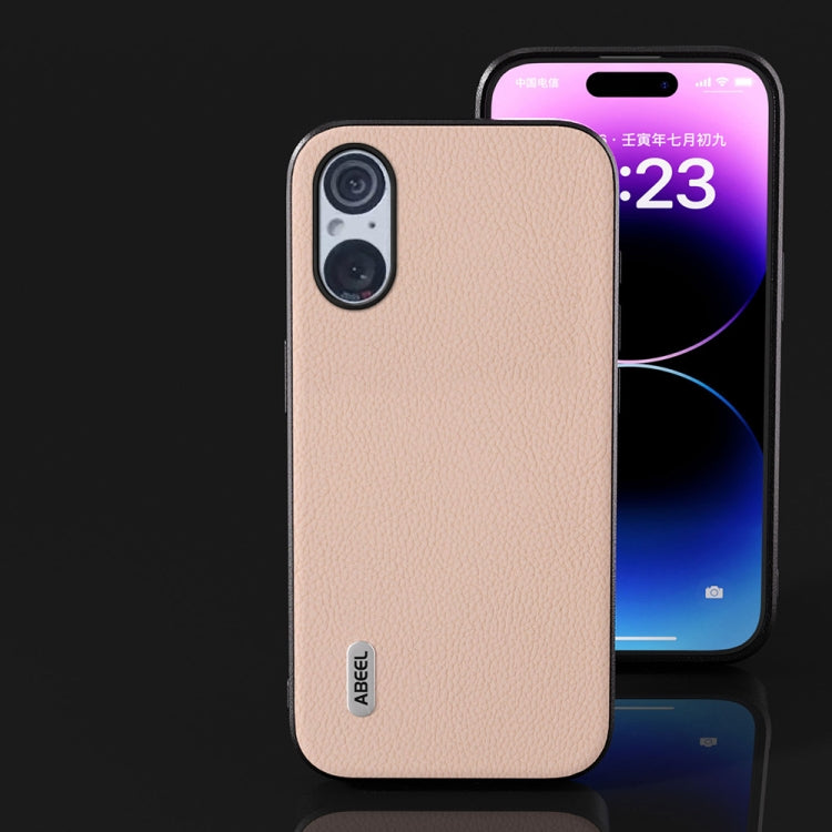 Funda para Sony Xperia 5 V Abeel Cuero Genuino y PC Textura Litchi (Oro Rosa)