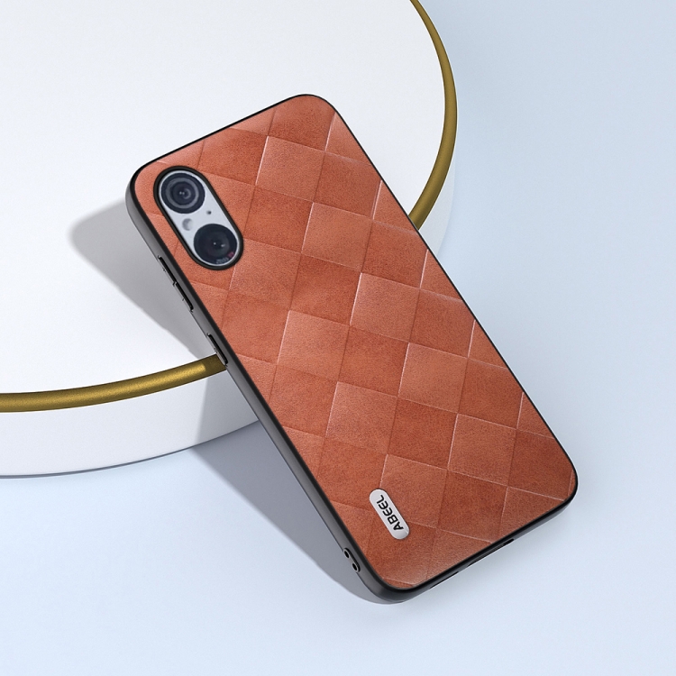 Funda para Sony Xperia 5 V Abeel Weave Plaid PU para Teléfono (Marrón)