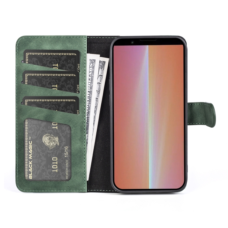 Funda de Cuero para Sony Xperia 5 V con Tapa Horizontal y Costura (Verde)
