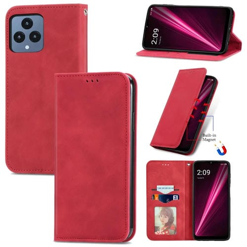 Funda Magnética de Cuero para T-Mobile Revvl 6 5G Retro Skin Feel (Rojo)