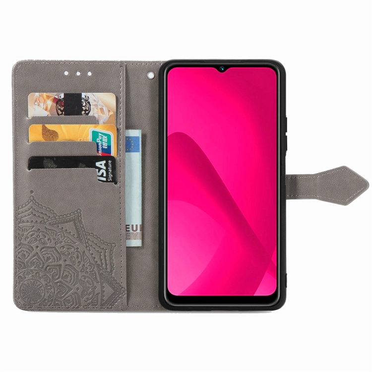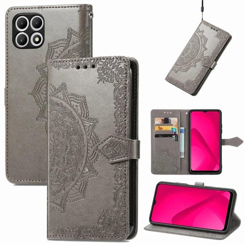 Funda para T-Mobile T Phone 2 Pro 5G Cuero con Relieve Flor de Mandala (Gris)