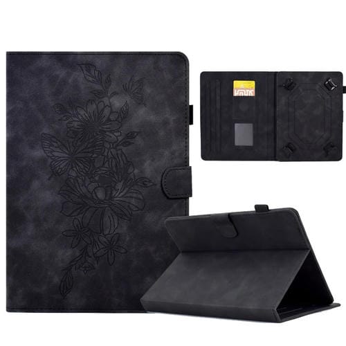 Estuche para Tableta 7 Pulgadas Cuero con Relieve Mariposa Peonía (Negro)