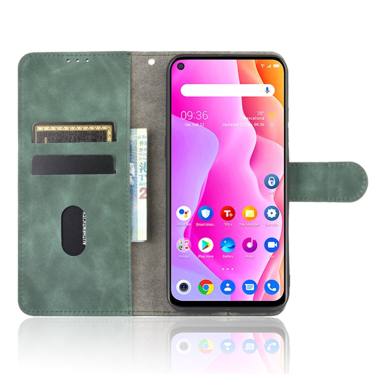 Funda Cuero PU para TCL 10L con Hebilla Magnética, Soporte, Ranuras para Tarjetas y Billetera (Verde)
