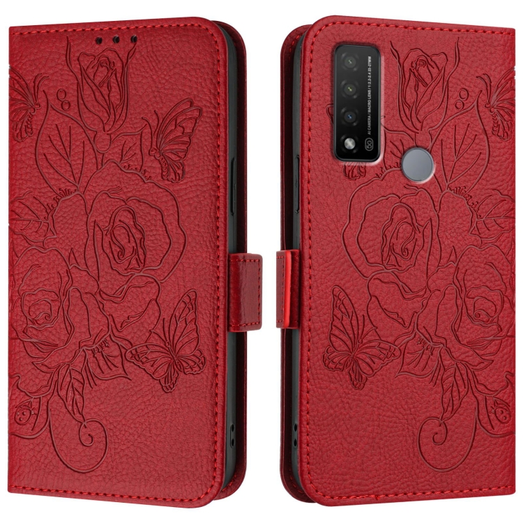 Funda de Cuero Antirrobo RFID para TCL 20 R 5G con Relieve (Rojo)