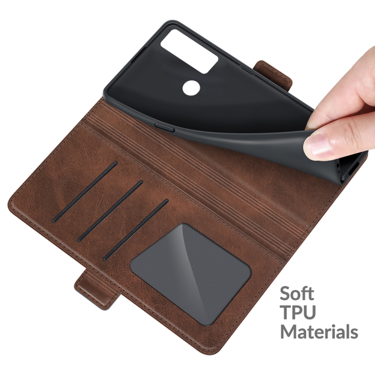 Funda para TCL 20 Se con Hebilla Magnética Doble Lado Caja de Cuero Tapa Horizontal Soporte Ranuras para Tarjetas y Billetera (Marrón)