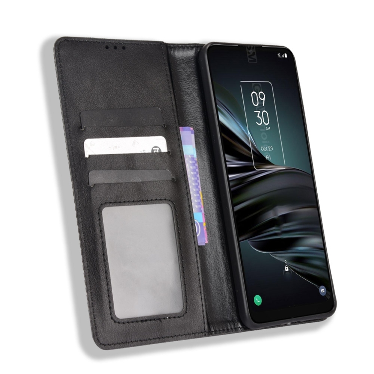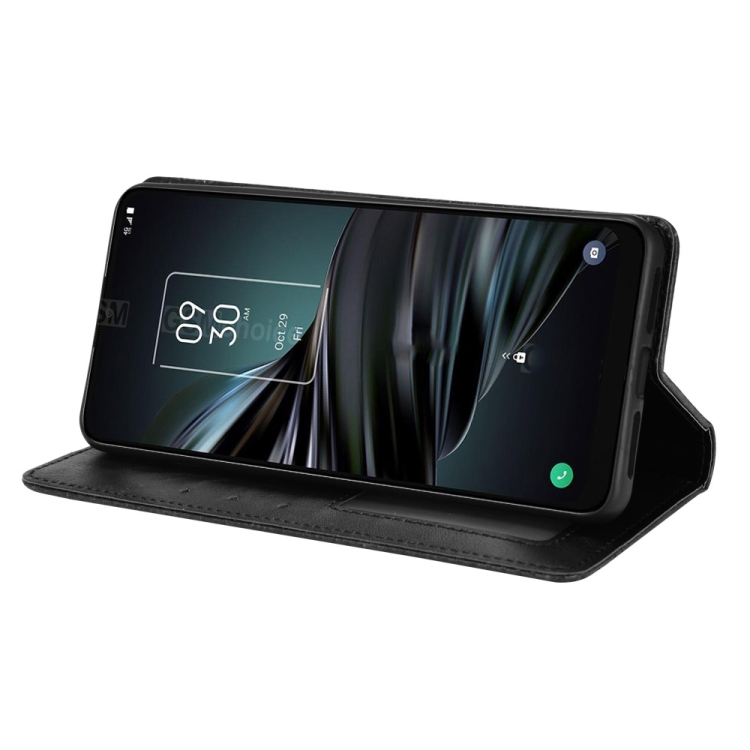 Funda Telefónica para TCL 20 Xe Hebilla Magnética Retro Textura de Cuero (Negro)