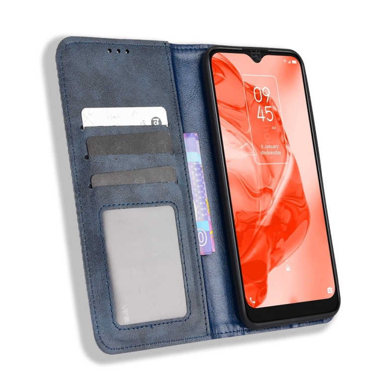 Funda Telefónica para TCL 205 Hebilla Magnética Textura de Cuero (Azul)