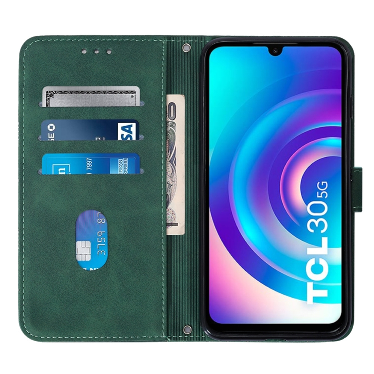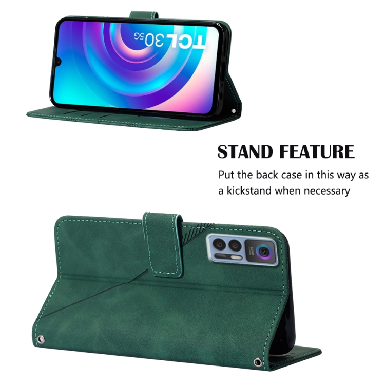Funda de Cuero con Tapa En Relieve para TCL 30 5G y 30+ 5G Crossbody (Verde Oscuro)