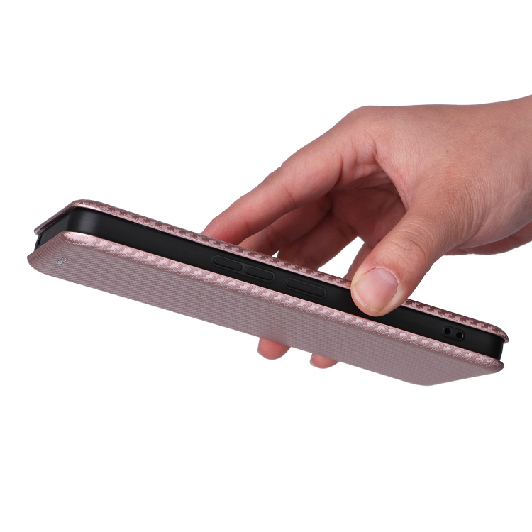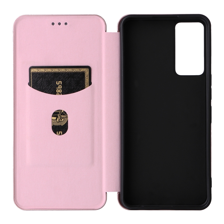 Funda de Cuero para TCL 40 R 5G con Textura de Fibra de Carbono (Rosa)