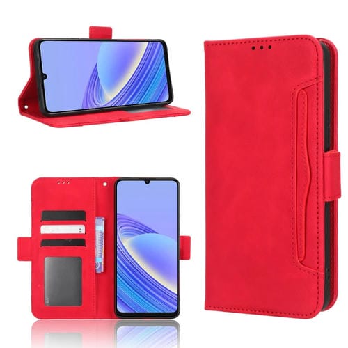 Funda de Cuero para TCL 40 Se Skin Feel con Textura Becerro y Ranuras para Tarjetas (Rojo)
