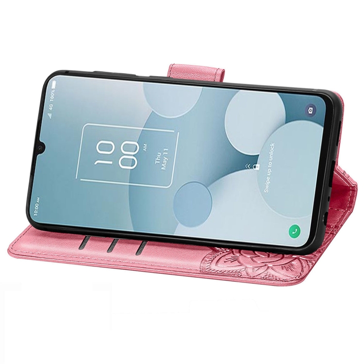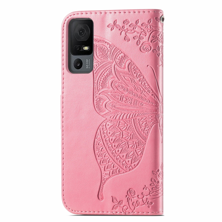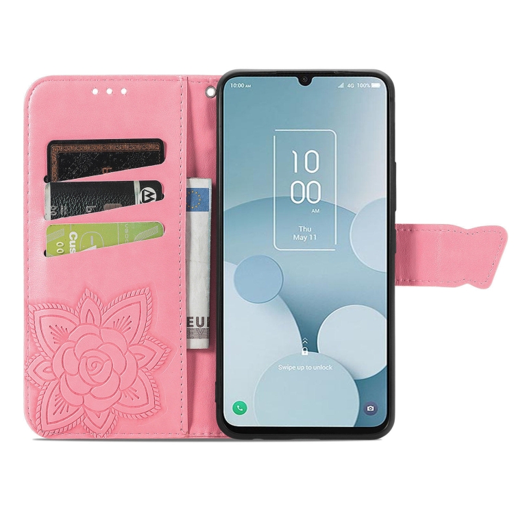 Funda de Cuero para TCL 40 XL Butterfly Love Flower en Relieve (Rosa)