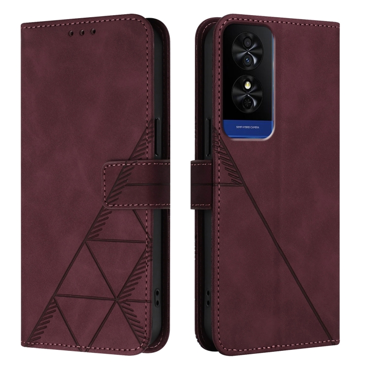 Funda para TCL 50 5G Crossbody de Cuero con Tapa en Relieve 3D (Rojo Vino)