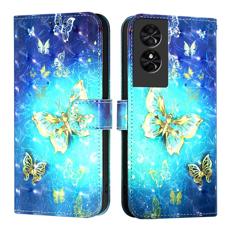 Funda para TCL 50 Se de Cuero con Tapa Horizontal y Pintura 3D (Mariposa Dorada)