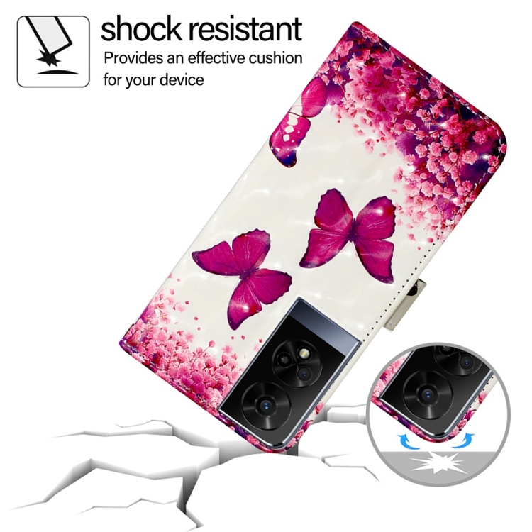 Funda de Cuero para TCL 50 Xe 5G con Tapa Horizontal y Pintura 3D (Mariposa Rosa)