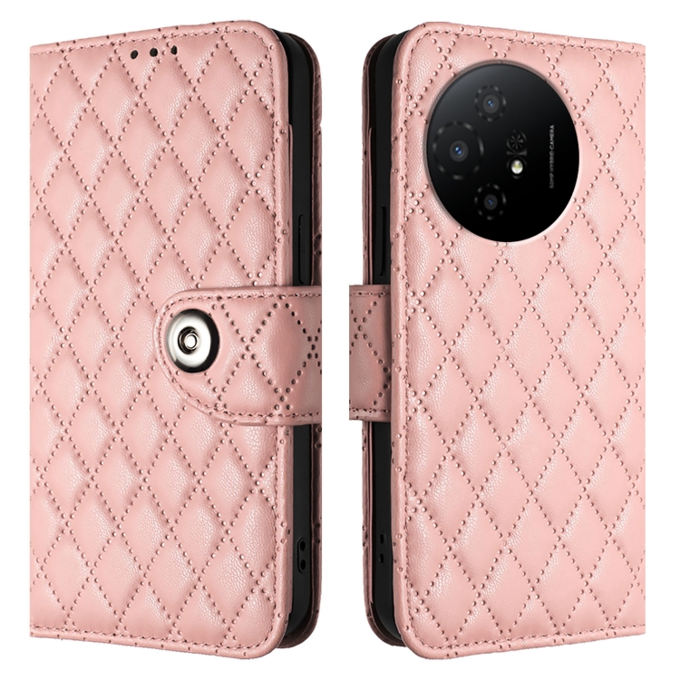 Funda para TCL 50 XL 5G de Cuero con Tapa Textura Romboidal y Cordón (Rosa Coral)