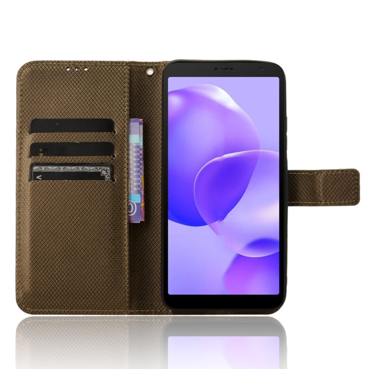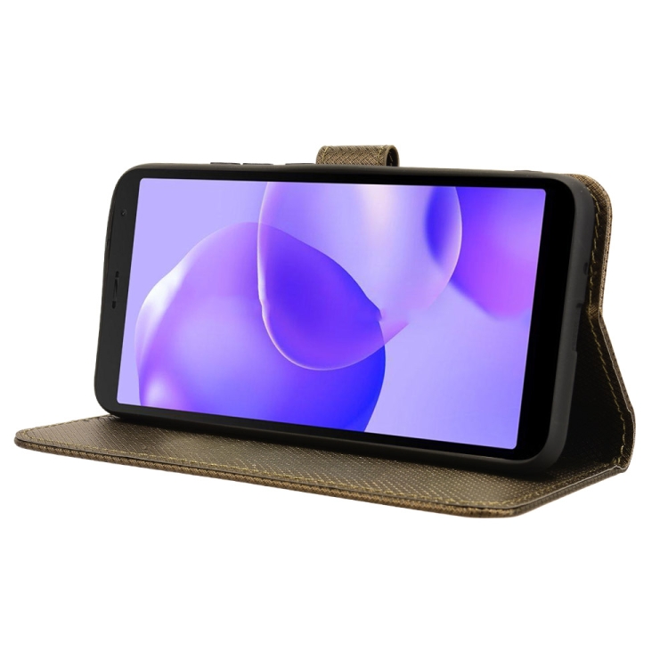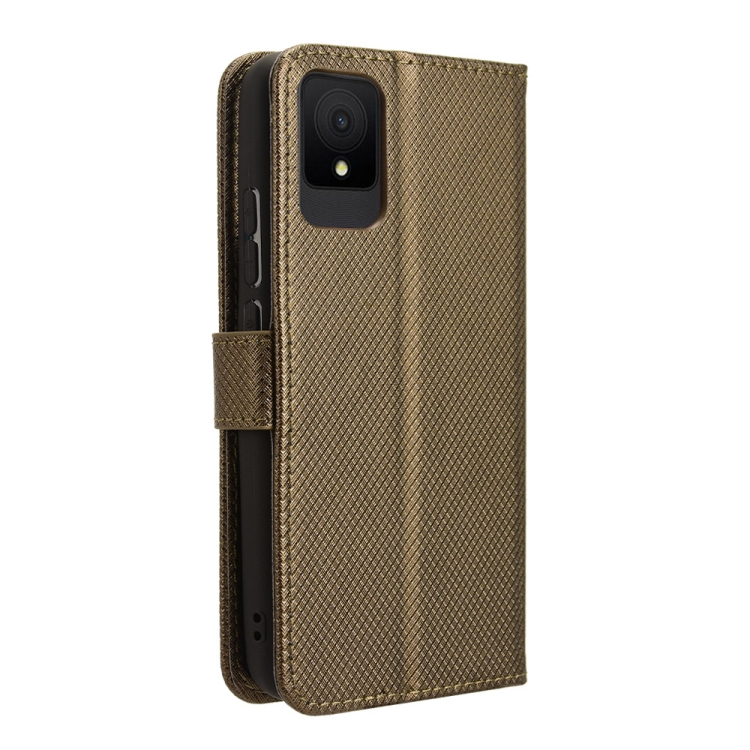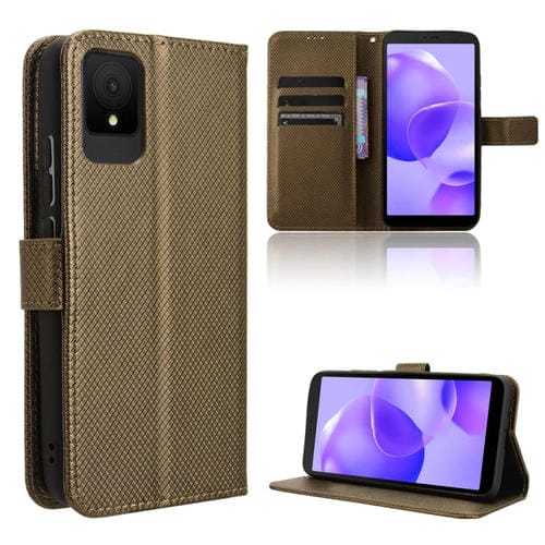 Funda de Cuero para TCL 502 con Textura de Diamante (Marrón)