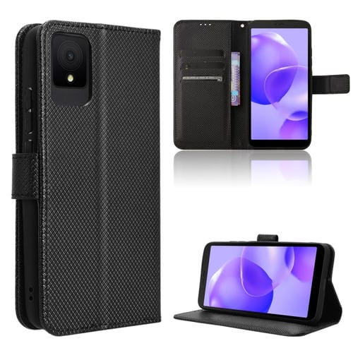 Funda de Cuero para TCL 502 con Textura de Diamante (Negro)