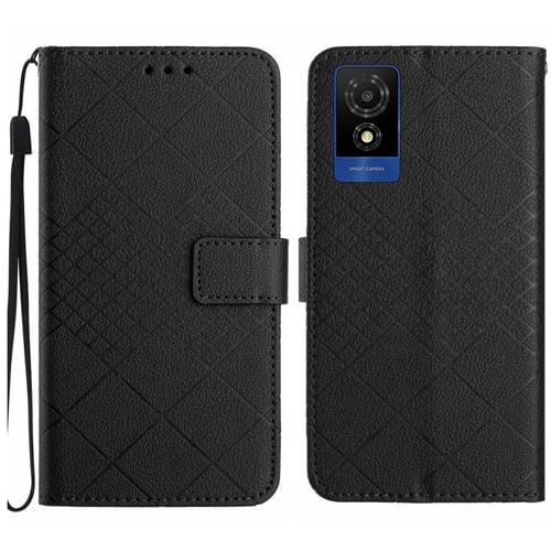 Funda de Cuero para TCL 502 con Textura de Rejilla Rómbica (Negro)