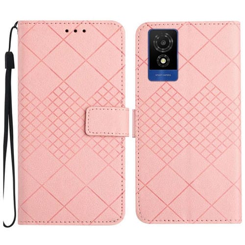 Funda de Cuero para TCL 502 con Textura de Rejilla Rómbica (Rosa)