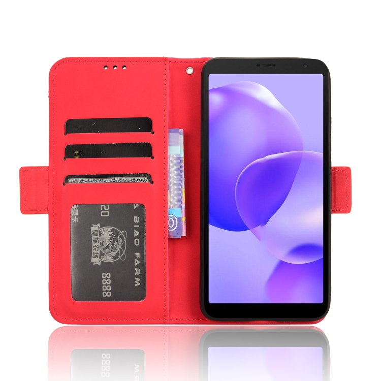 Funda de Cuero para Teléfono TCL 502 Skin Feel con Ranuras para Tarjetas (Rojo)