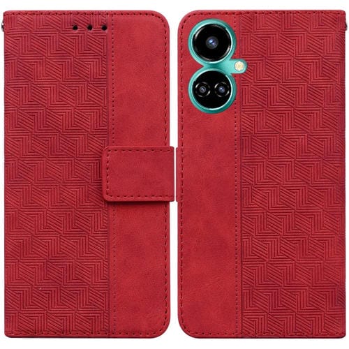 Funda de Teléfono para Tecno Camon 19 Cuero con Relieve Geométrico (Rojo)