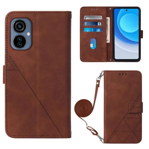 Funda de Cuero Flip para Tecno Camon 19 Neo Crossbody 3D en Relieve (Marrón)