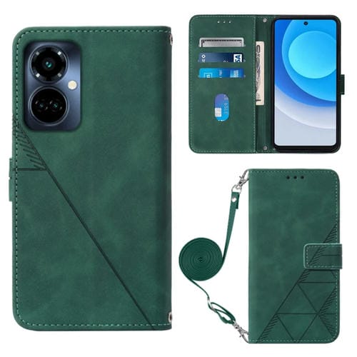 Funda de Cuero para Tecno Camon 19 Pro 5G Crossbody 3D con Tapa En Relieve (Verde Oscuro)