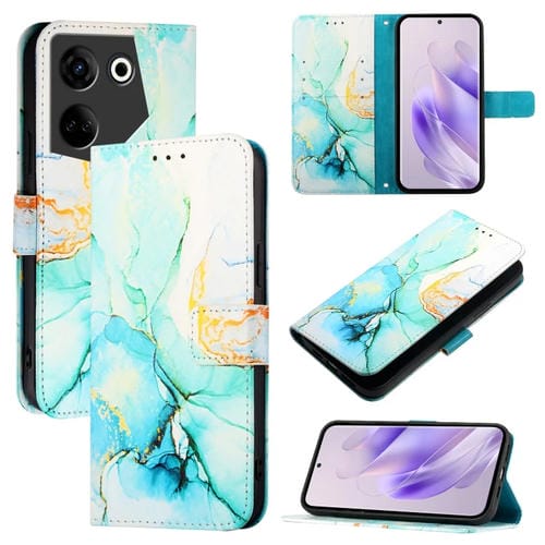Funda de Cuero para Tecno Camon 20/20 Pro 4G Pt003 con Tapa y Patrón de Mármol (Verde)