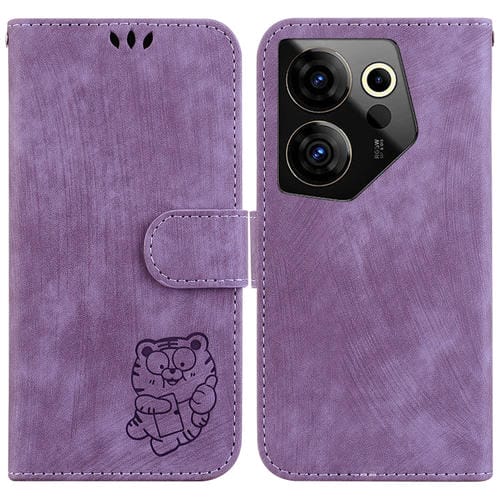 Funda de Cuero para Tecno Camon 20 Premier 5G Little Tiger en Relieve (Púrpura)