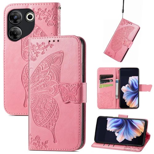 Funda para Tecno Camon 20 Pro 5G Butterfly Love Flower de Cuero en Relieve (Rosa)