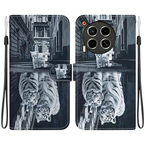 Funda para Tecno Camon 30 4G / 30 5G Cl6 Cl7 de Cuero con Dibujo y Textura Cristal (Reflejo Tigre Gato)