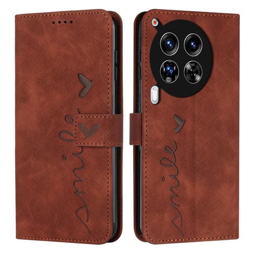 Funda para Tecno Camon 30 4G y 5G Skin Feel Corazón Cuero Relieve con Cordón Largo (Marrón)