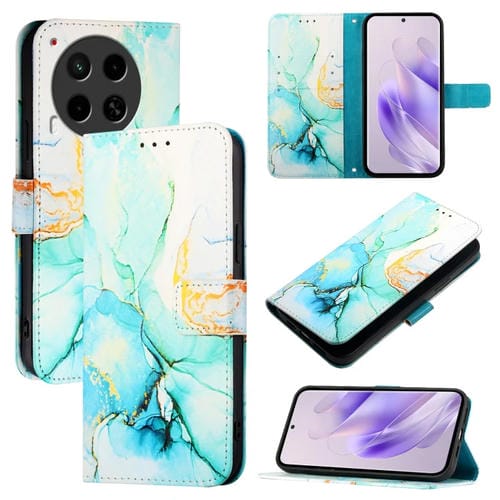 Funda de Cuero con Tapa para Tecno Camon 30 5G / 4G Pt003 con Patrón de Mármol (Verde)