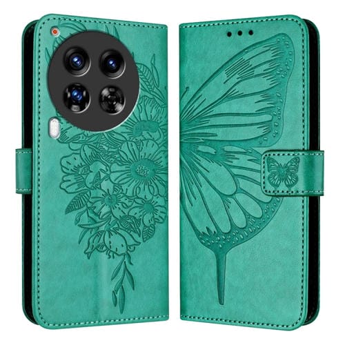 Funda de Cuero para Tecno Camon 30 Premier 5G con Mariposa en Relieve (Verde)
