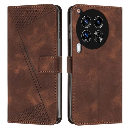 Funda de Cuero para Tecno Camon 30 Premier Dream Triangle con Cordón (Marrón)