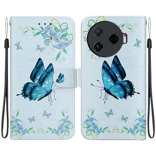 Funda de Cuero para Tecno Camon 30 Pro Cl8 con Dibujo Coloreado y Textura de Cristal (Azul)