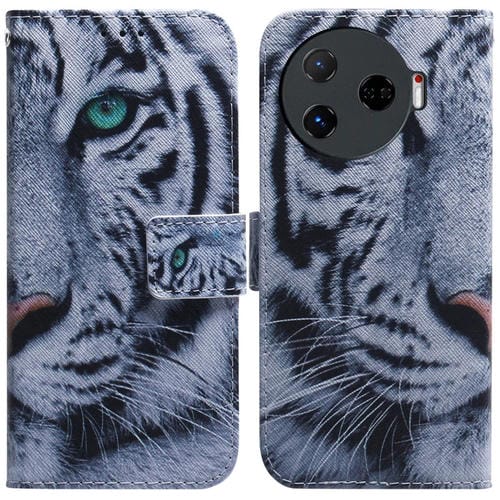 Funda de Cuero con Tapa para Tecno Camon 30 Pro Cl8 con Dibujo Tigre
