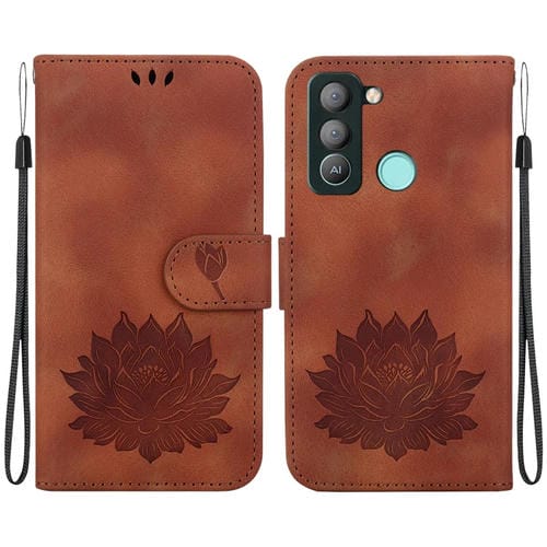 Funda de Cuero para Tecno Pop 5 Lte con Relieve Lotus (Marrón)